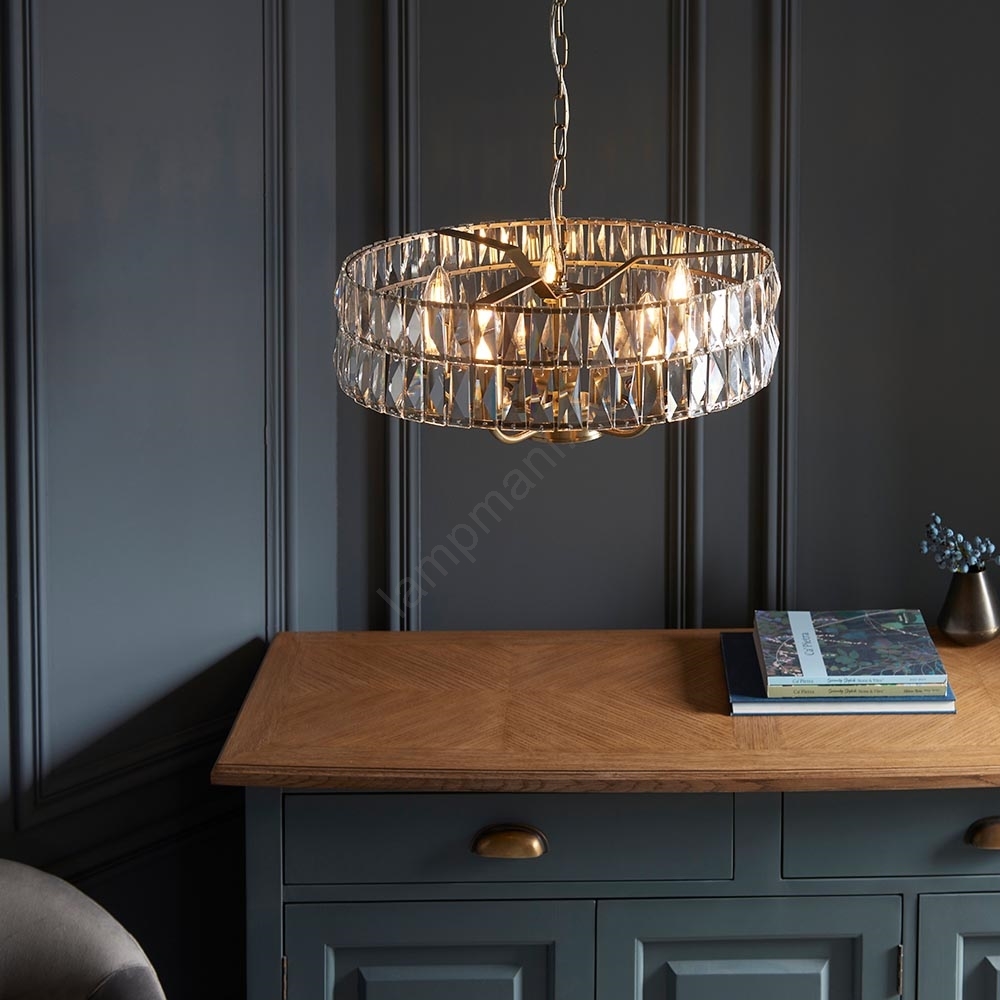 Endon 106244 - Ljuskrona på kedja CLIFTON 5xE14/6W/230V mässing/klar | Lampmani