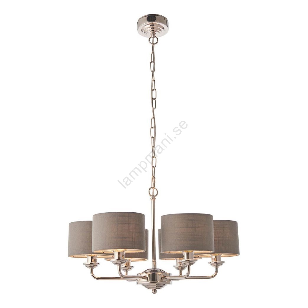 Endon 94381 - Ljuskrona på kedja HIGHCLERE 6xE14/28W/230V grå/skinande krom | Lampmani