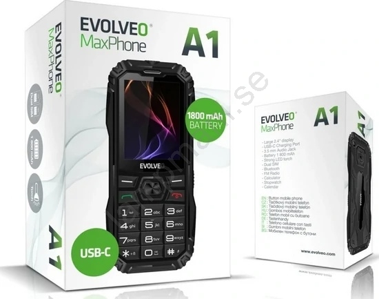 Evolveo - MaxPhone A1 knapptelefon med dubbel-SIM, svart | Lampmani