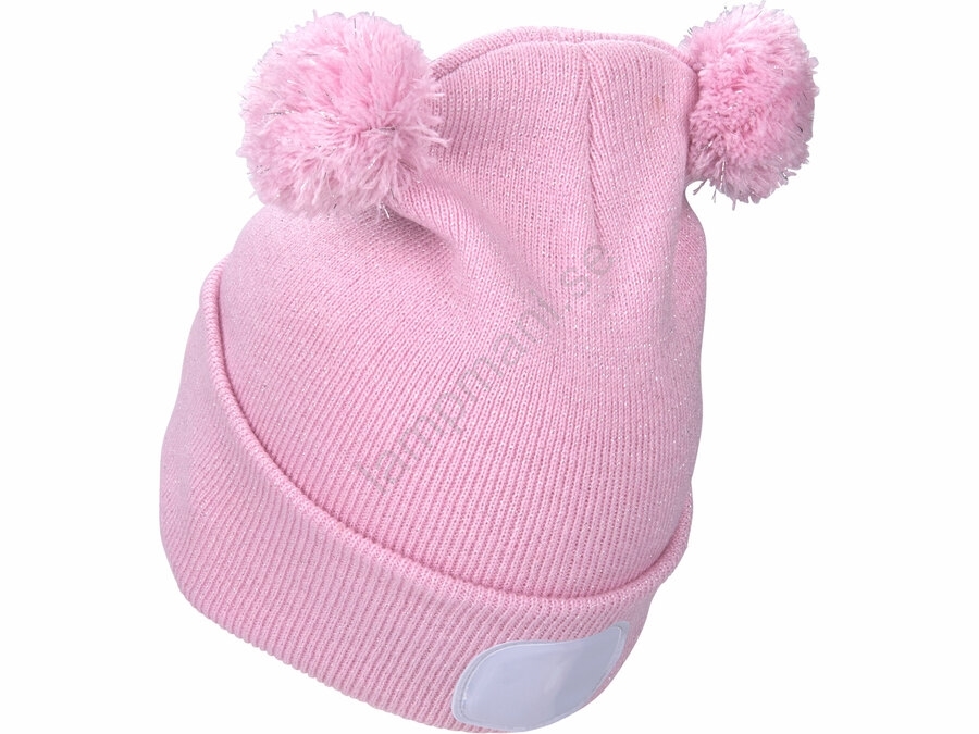 Extol - Mössa med pannlampa och USB-laddning 250 mAh rosa med tofsar barnstorlek