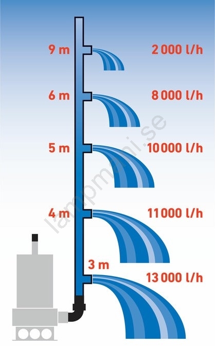 • Pumpen har en förlängd matarkabel (15 m), vilket gör det möjligt att ha ett eluttag på större avstånd från vattnet som ska pumpas.