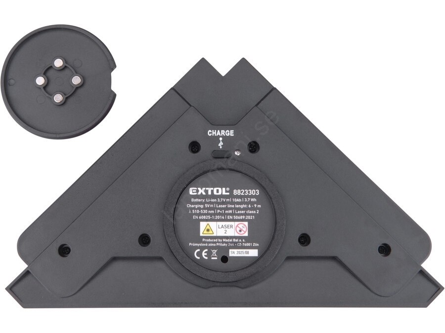 Extol Premium - Laservinkelhake 90° med elektrisk sugkopsmodul 5V/1000 mAh