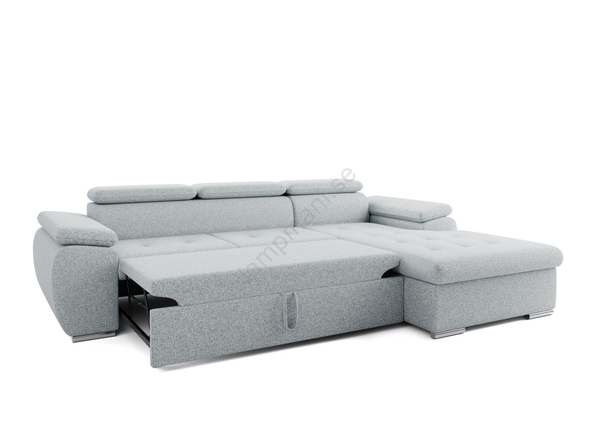 • Bäddbar L-formad hörnsoffa med förvaring PADUA, grå, vänster