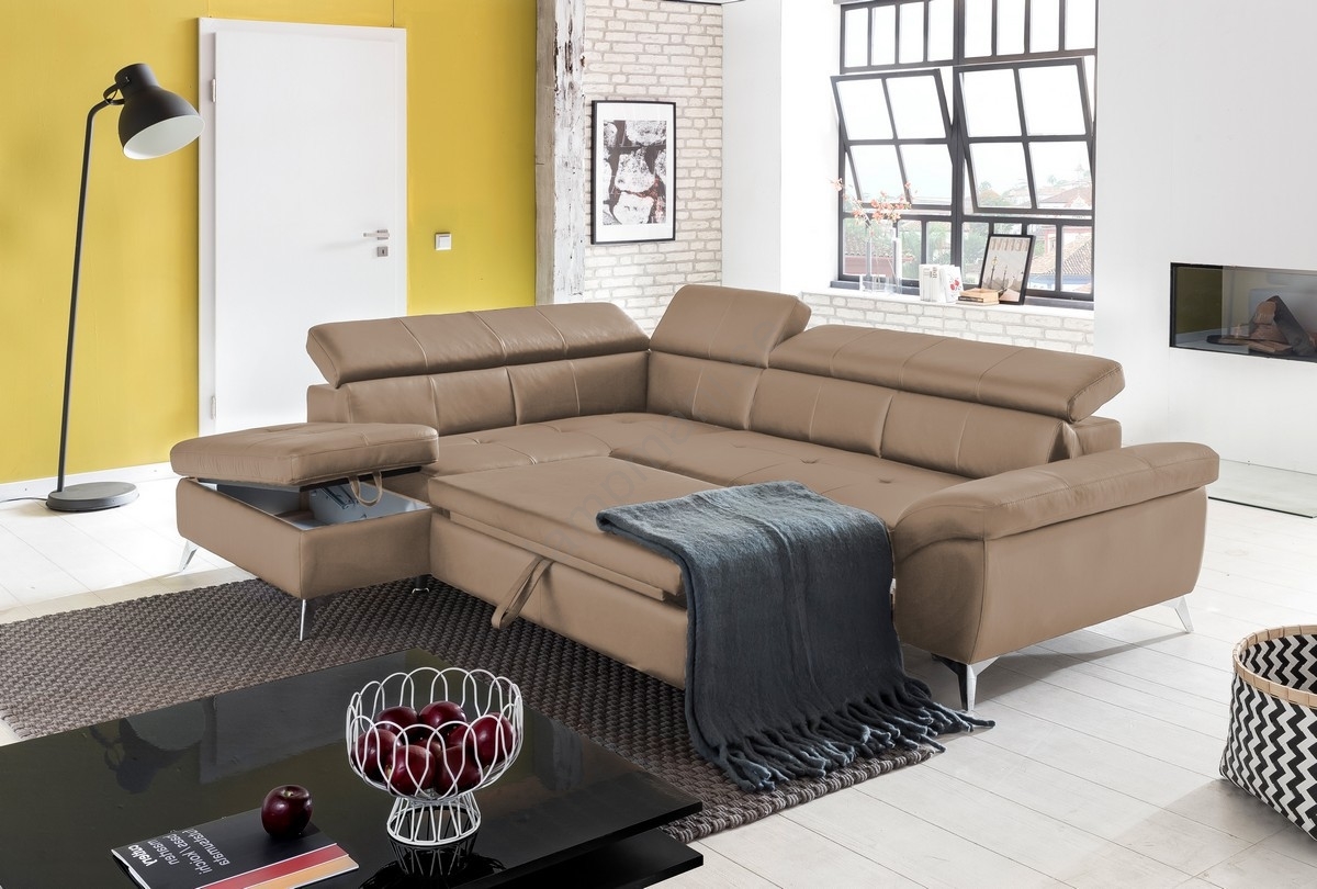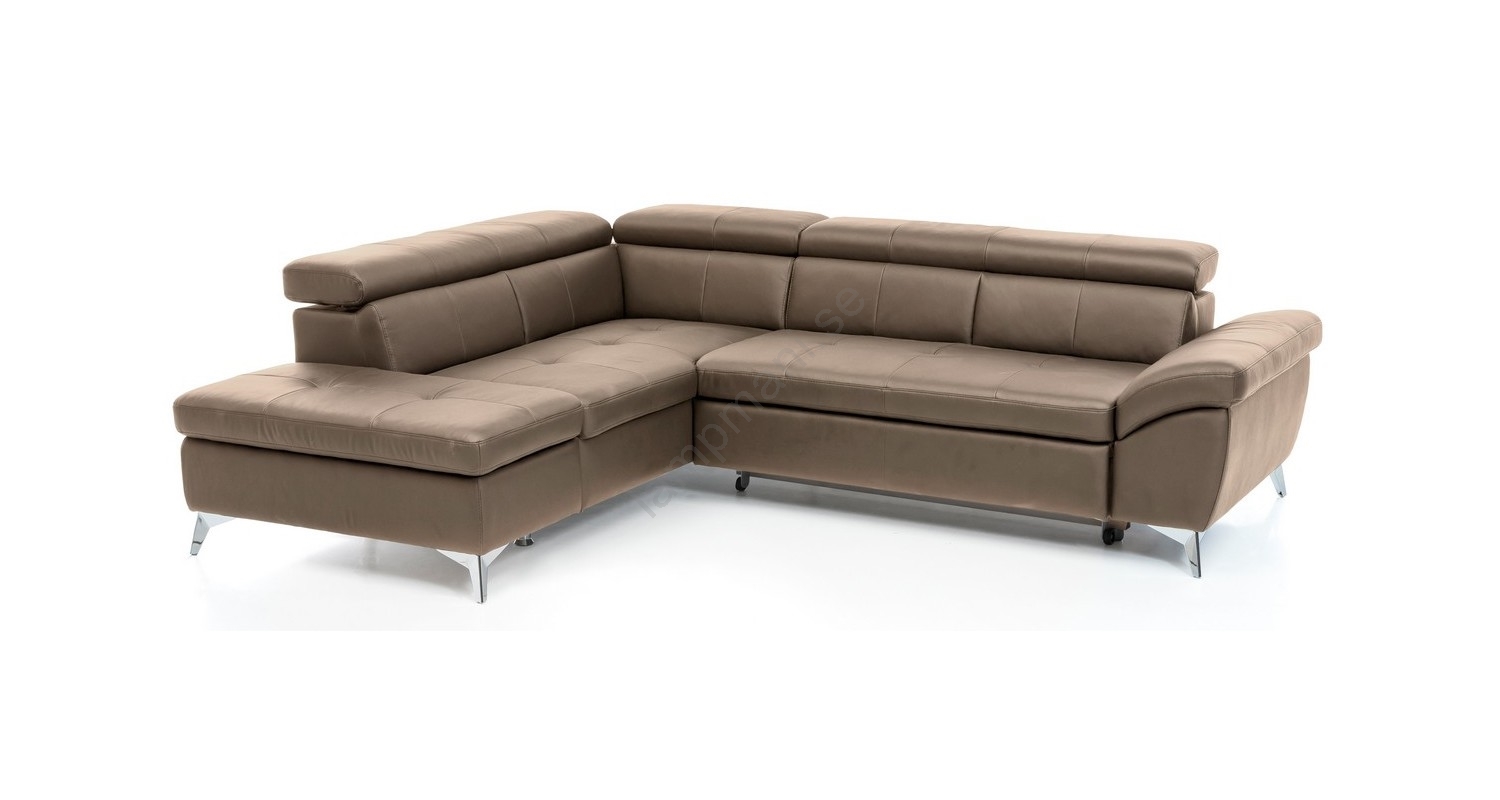 Läder hörnsoffa SALERNO II vänster, brun, bäddbar, L-form | Lampmani