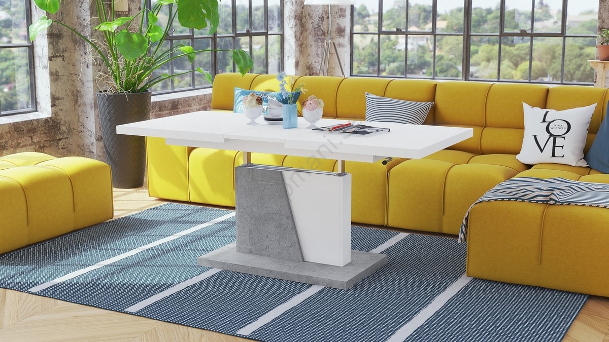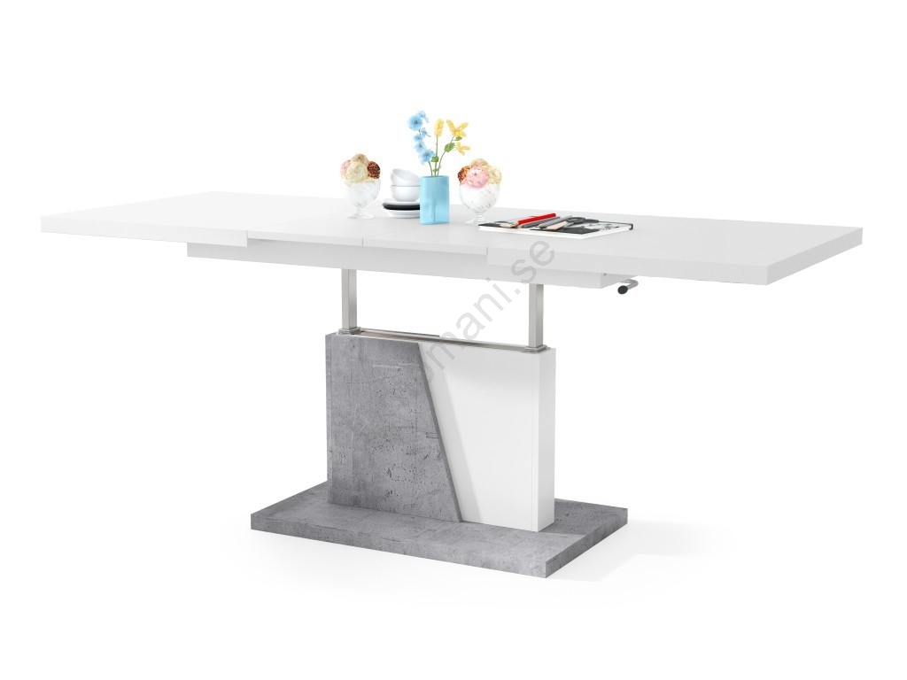 • Utdragbart soffbord/matbord med lyftbar skiva NINO vit/grå betong