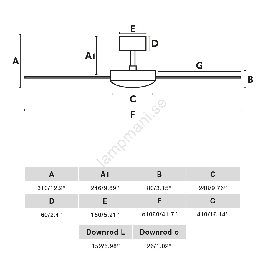 • Fläktbladen är dubbelsidiga (matt vit, lönn).