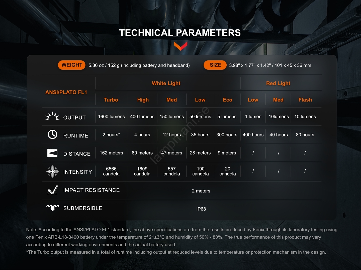 • Den nya generationen av den uppladdningsbara pannlampan Fenix HM61R Amber V2.0 erbjuder en ljusflöde på upp till 1600 lumen (ANSI) med neutralt vitt ljus (4500 K) och en räckvidd på upp till 162 meter.