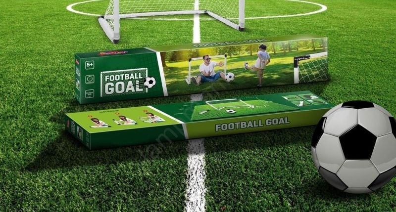 • Förpackningen innehåller ett fotbollsmål, en liten uppblåsbar boll, en pump och markfästen.