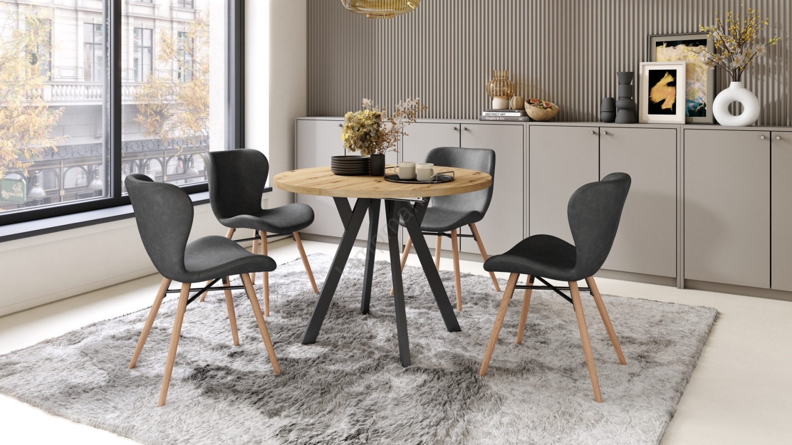 • Utdragbart matbord ARTUR ek craft/svart