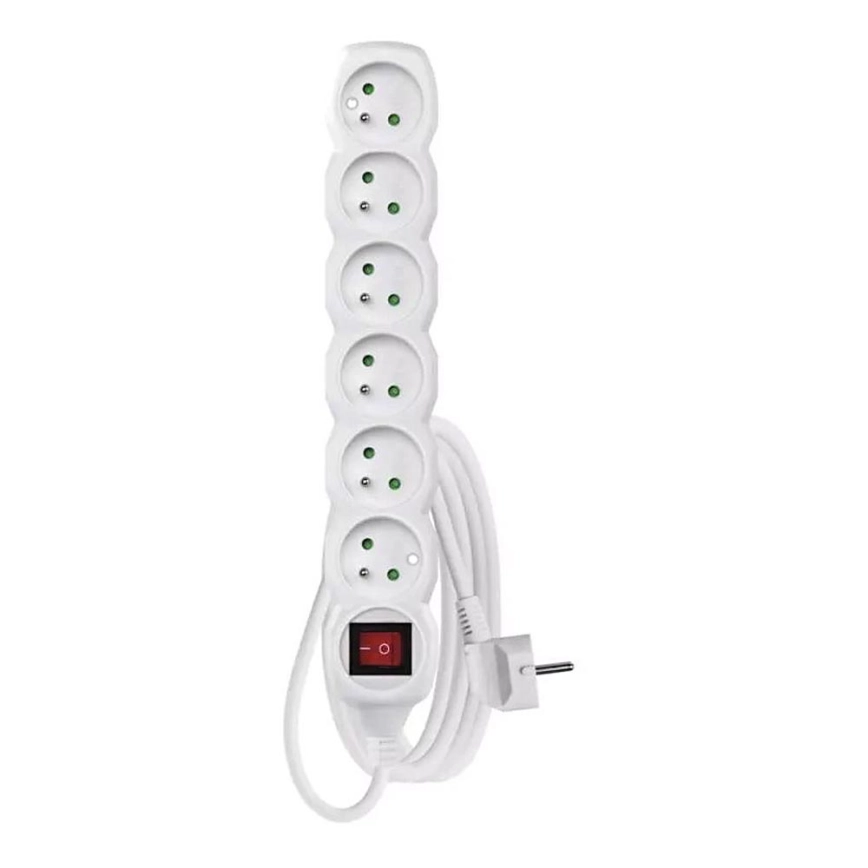 Förlängningskabel med strömbrytare 6 uttag 3m vit