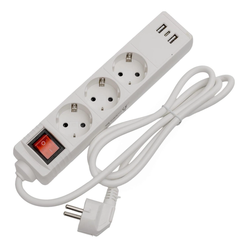 Förlängningskabel med strömbrytare, 3 uttag + 2× USB‑A + 1× USB‑C, 1,5 m, SCHUKO, vit | Lampmani