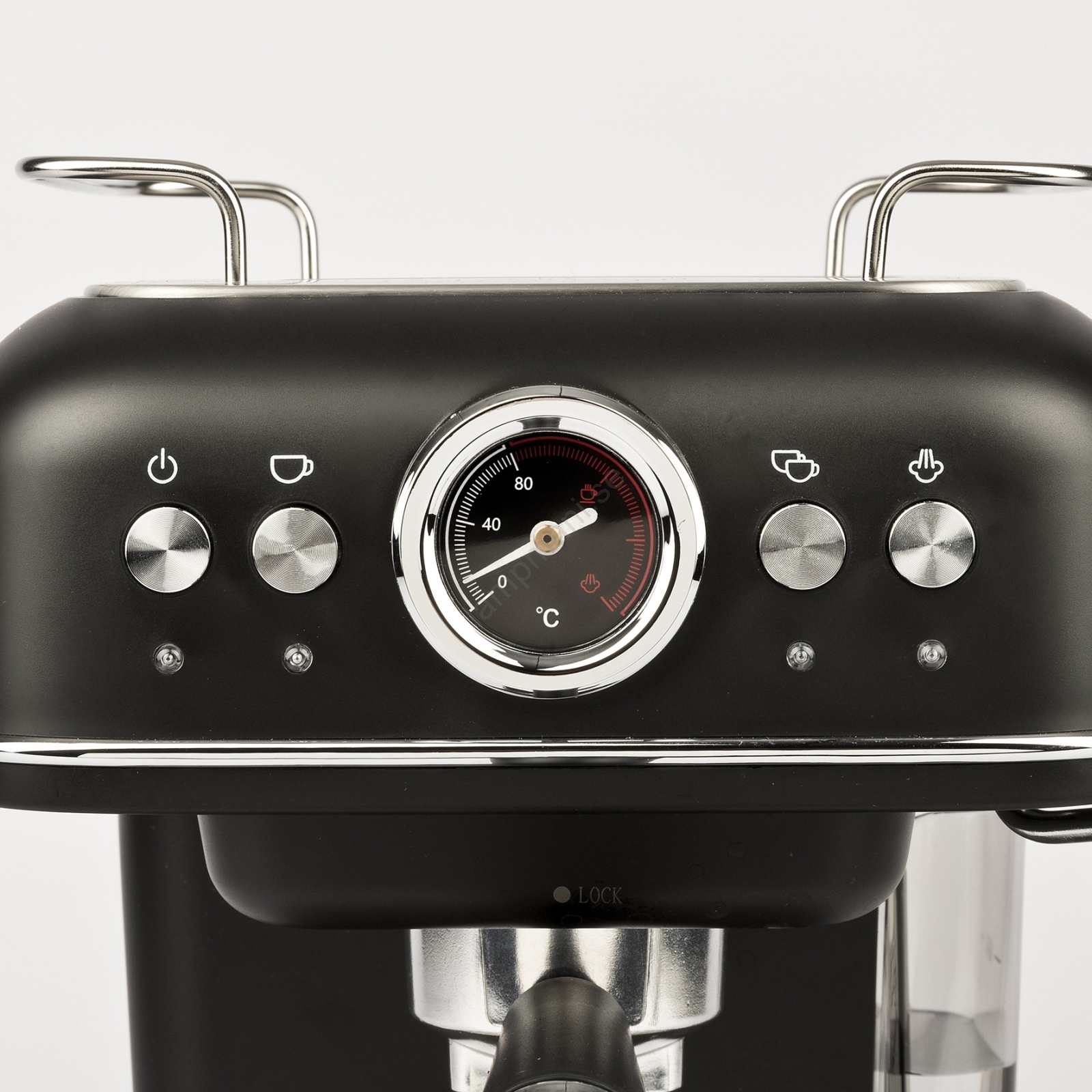 • Den eleganta spak-espressomaskinen är ett utmärkt val för espressokännare som vill ha full kontroll över bryggningen tack vare en lättavläst analog termometer.