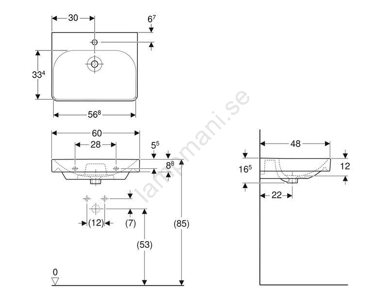 Geberit 500.229.01.1 - Vägghängt tvättställ Smyle Square 60x48 cm keramik/vit | Lampmani