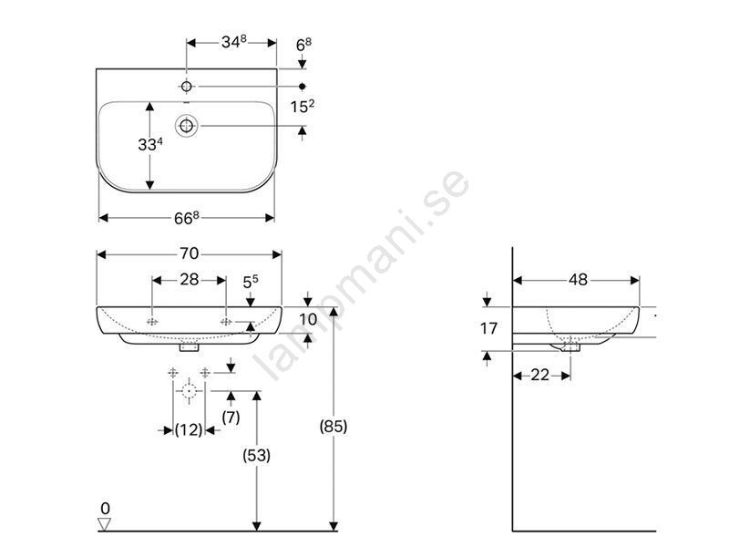 Geberit 500.248.01.1 - Vägghängt tvättställ Smyle 70x48 cm keramik/vit | Lampmani