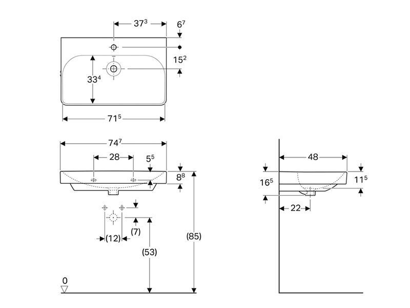 Geberit 500.249.01.1 - Vägghängt tvättställ Smyle Square 75x48 cm keramik/vit | Lampmani