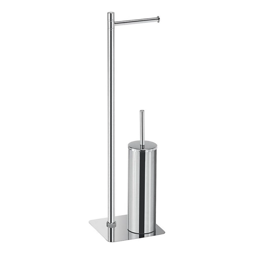 Gedy - Fristående WC-borste med hållare för toalettrulle FLORI, blank krom
