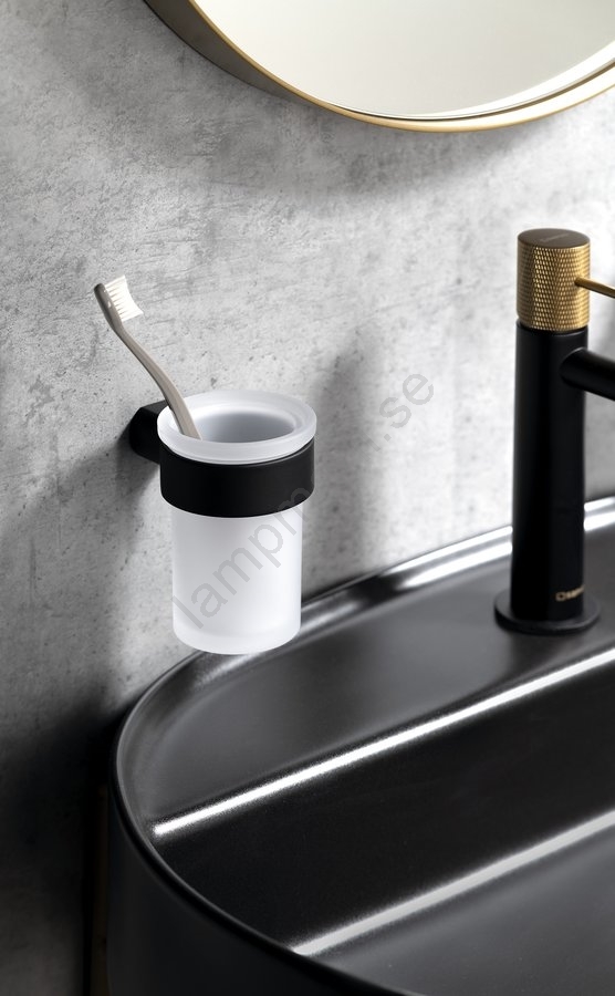 Gedy - Väggmonterad tandborstehållare PIRENEI mjölkig glas/svart | Lampmani