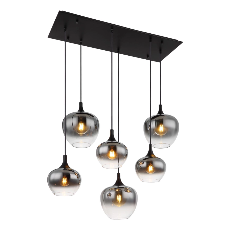 Globo - Ljuskrona med textilsladd 6xE27/40W/230V svart kännetecknar snygg och funktionell design. En glödlampa med E27 lock är lämplig för lampan. Här kan du köpa andra glödlampor till förmånliga priser. Du kommer att få ett intressant tillägg till ditt hem.