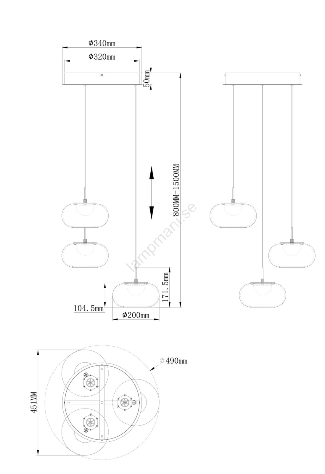 Globo 15744-3HN - LED ljuskrona med textilsladd QUINTARA 3xLED/6W/230V | Lampmani