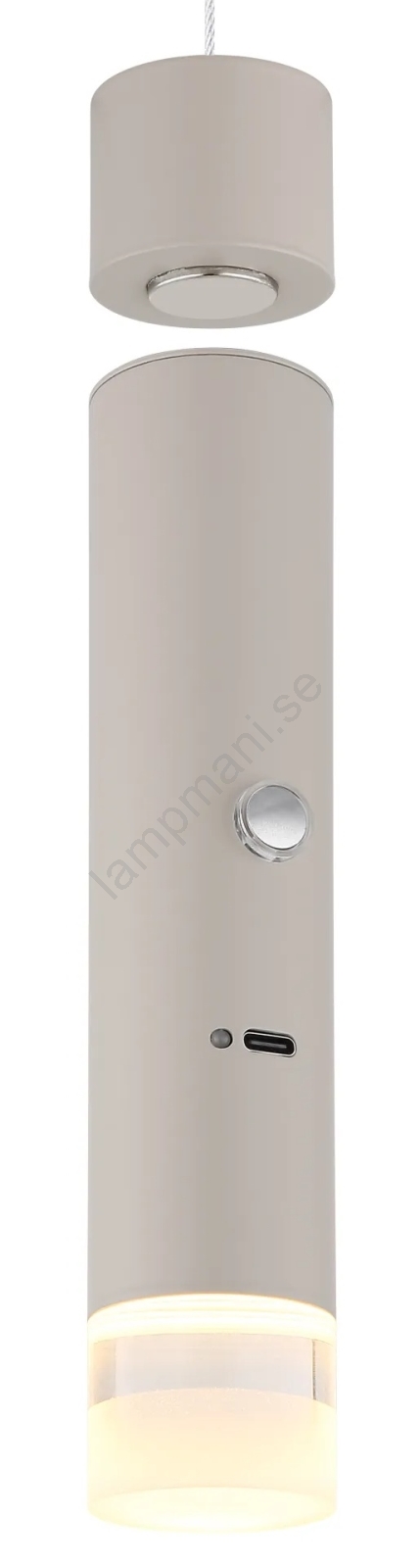 • En raffinerad metallkropp i sandfärgad ton och ett cylindriskt skärm i transparent eller satinerad akryl ger ett behagligt, jämnt ljus.