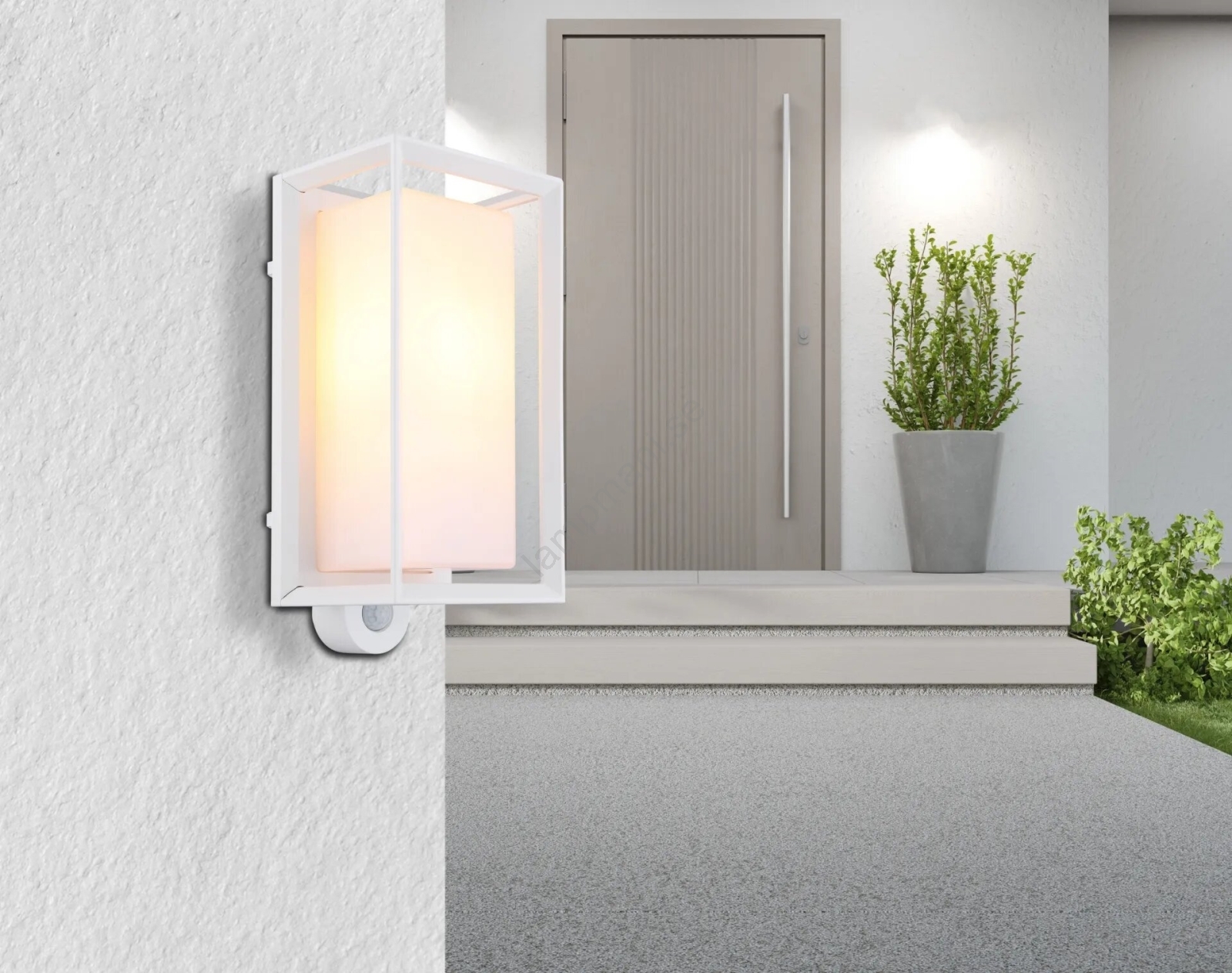 Globo 31982WS - Vägglampa med sensor för utomhusbruk LOGANA 1xE27/60W/230V IP44 vit | Lampmani