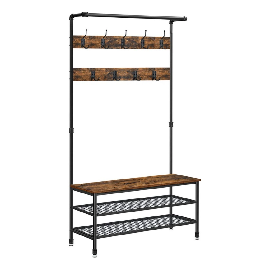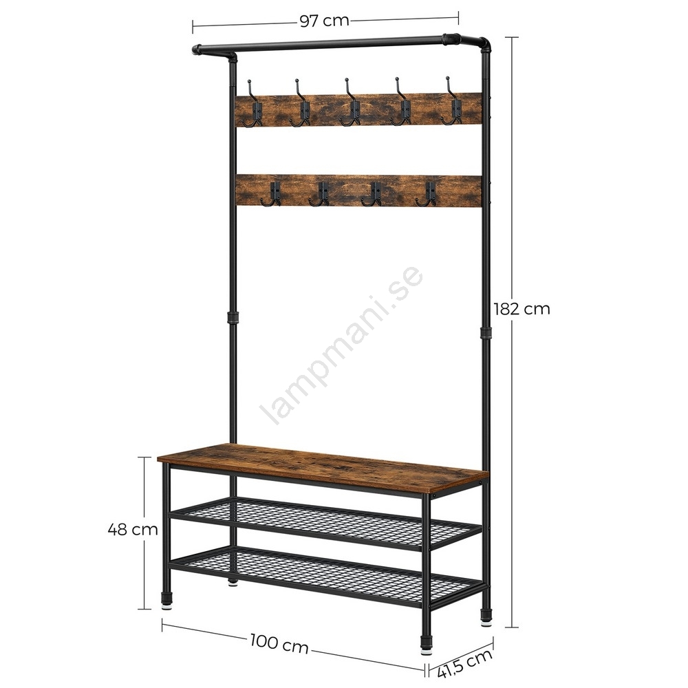 • Ta in träets charm och metallens styrka i ditt hem med detta stilfulla hallstativ i industriell design.
