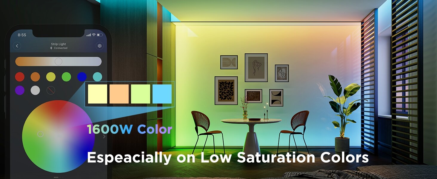 • RGBWWIC 5-i-1 dioder ger perfekt färgåtergivning och enastående vitt ljus från varmt till kallt, med en täthet på 60 LED per meter.