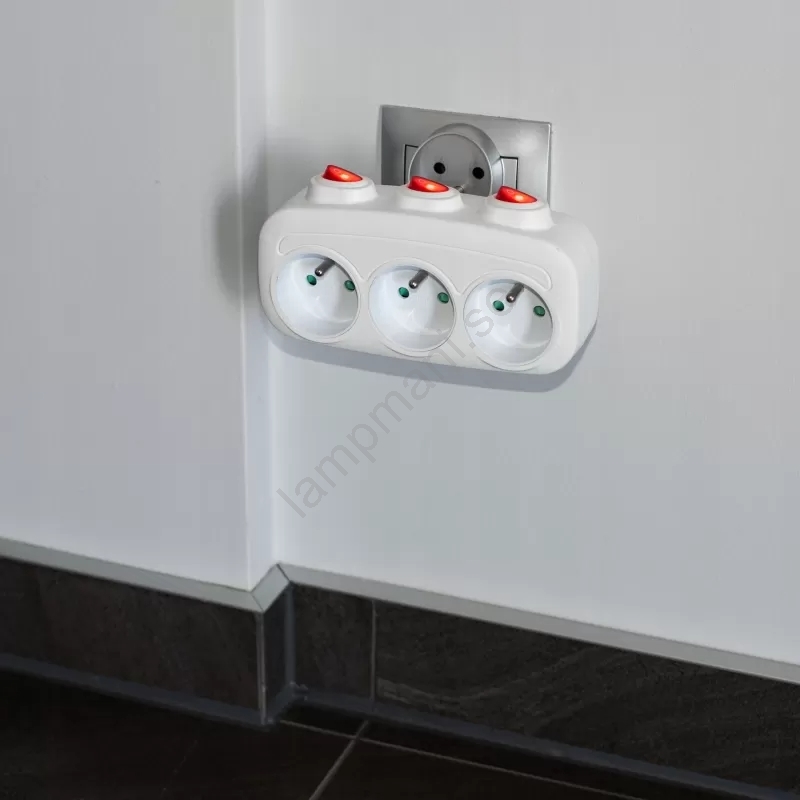 Grenuttag med strömbrytare, 3 uttag | Lampmani