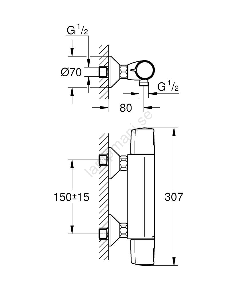 • Nedre duschutlopp 1/2" kompatibelt med vanliga duschslangar.