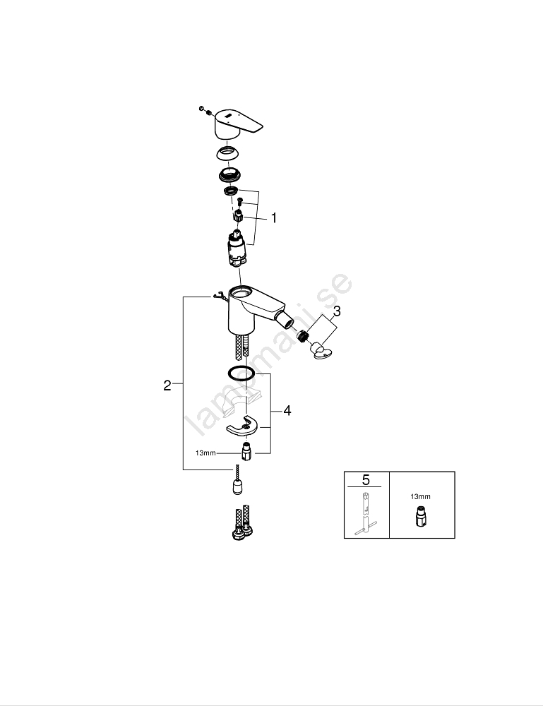 GROHE 23332001 - BAUEDGE bidettblandare, storlek S, polerad krom | Lampmani