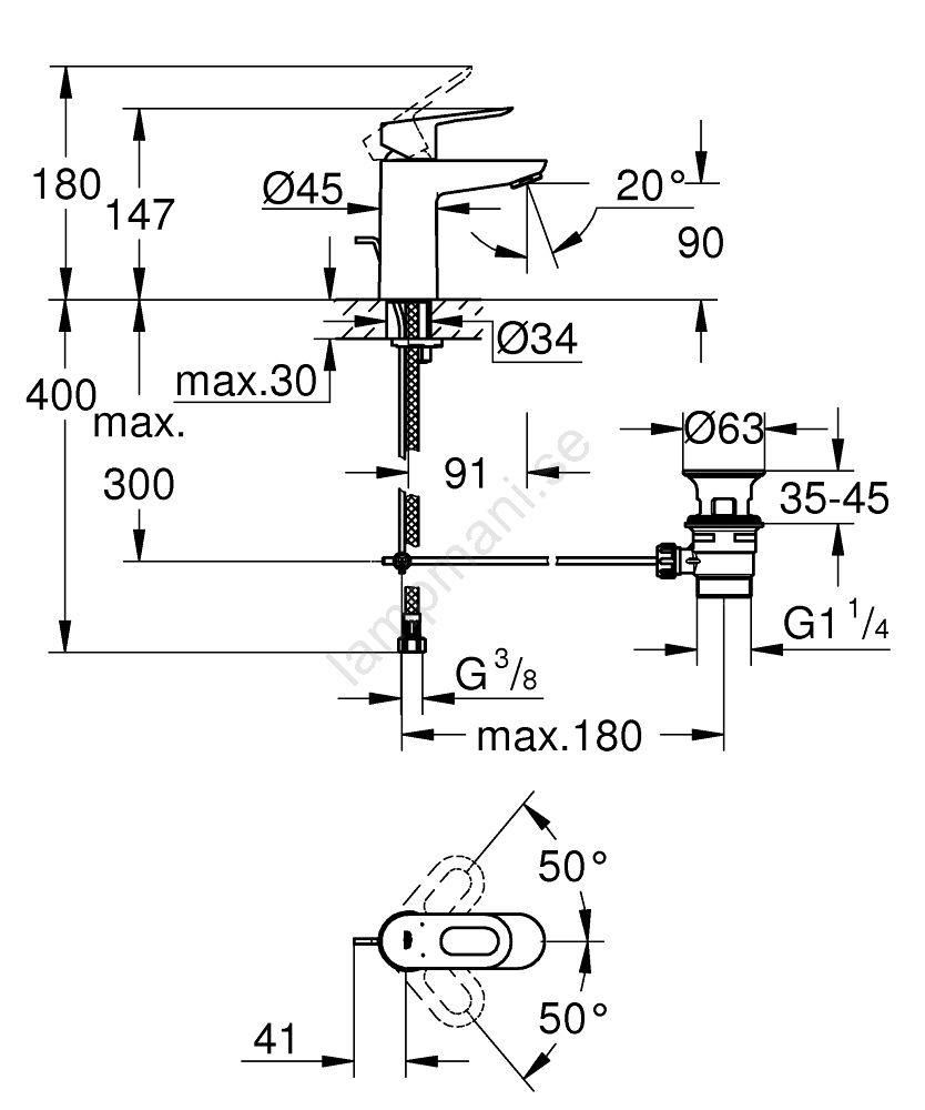• GROHE Water Saving-teknik minskar vattenförbrukningen till 5 l/min vid 3 bar.