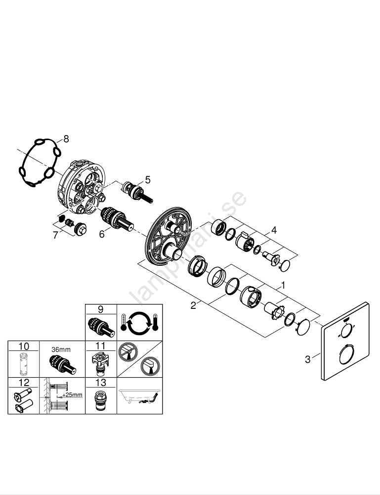 • Valfri temperaturbegränsare GROHE SafeStop Plus på 43 °C eller 46 °C för ökad säkerhet.
