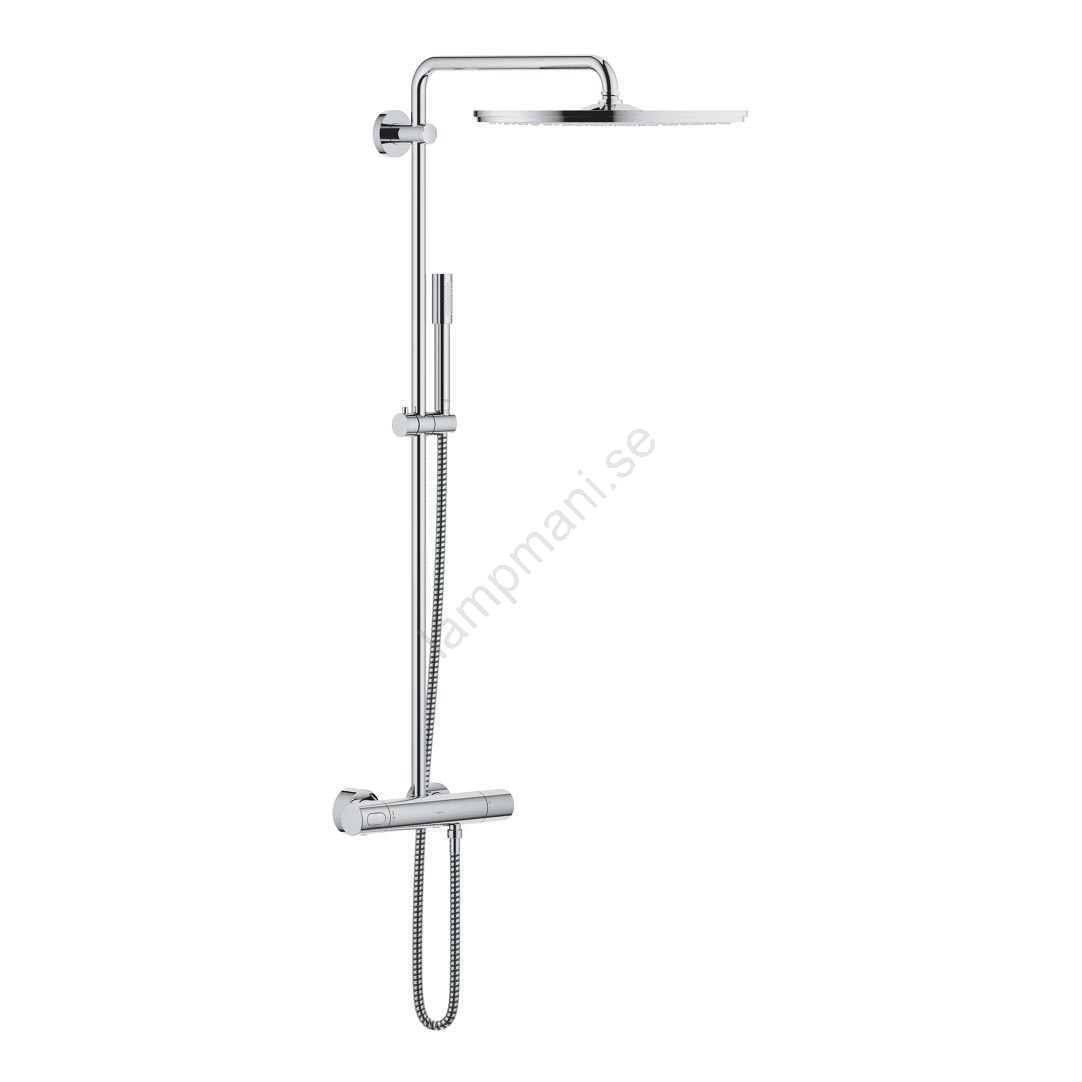 • Inner WaterGuide (intern vattenledning) förlänger livslängden på duschsystemet. ([pro.grohe.com](https://pro.grohe.com/en_pj/rainshower-system-shower-system-with-thermostat-for-wall-mounting-27174001.html?utm_source=openai))