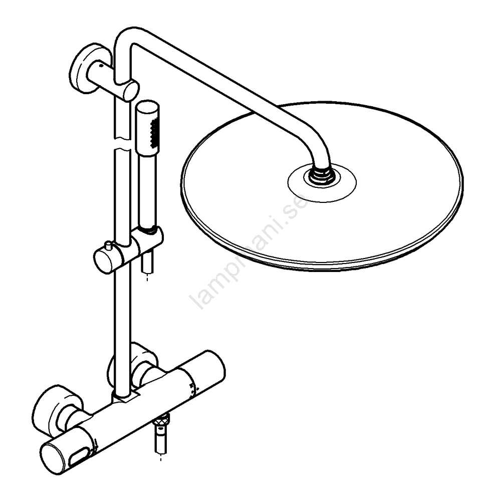 • Väggmonterad termostatblandare med Aquadimmer-funktion gör det enkelt att växla mellan duschhuvud och handdusch. ([pro.grohe.com](https://pro.grohe.com/en_pj/rainshower-system-shower-system-with-thermostat-for-wall-mounting-27174001.html?utm_source=openai))