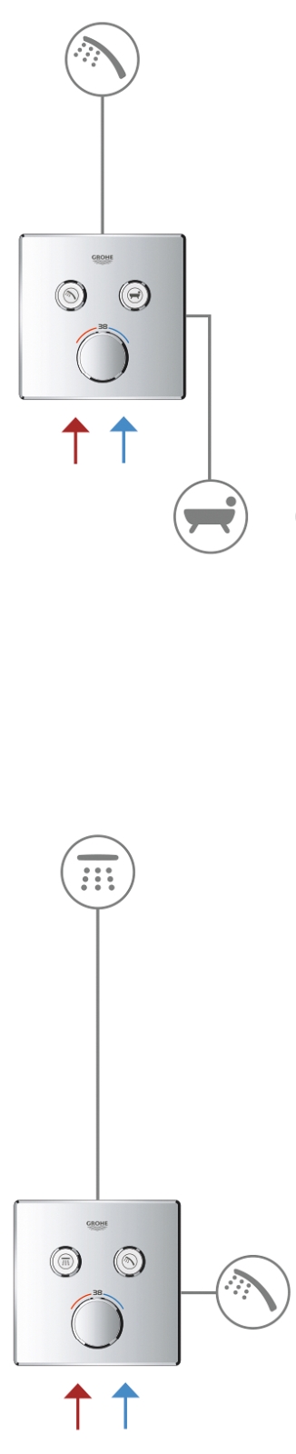 • GROHE SmartControl-teknologin möjliggör av/på med ett tryck och justering av flödet genom vridning, från sparläge till fullt flöde.