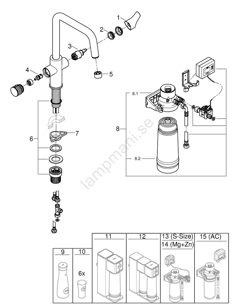 • GROHE Blue spakblandare för diskbänk med integrerad filterfunktion för rent dricksvatten.