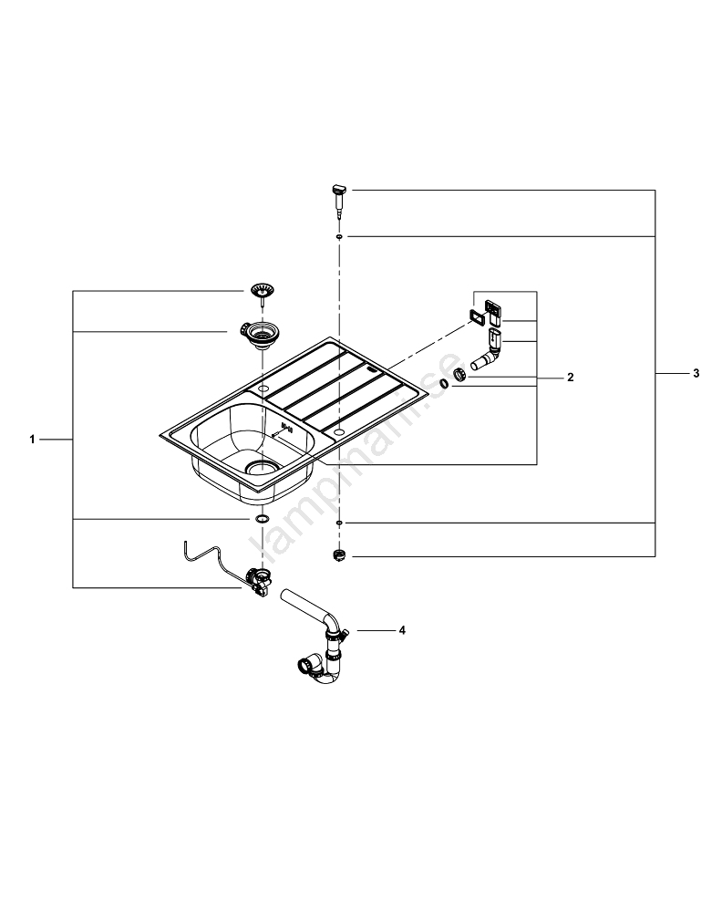 • I förpackningen ingår automatisk bottenventil med vridbar spak, avloppssats, sil för smuts och monteringsset.