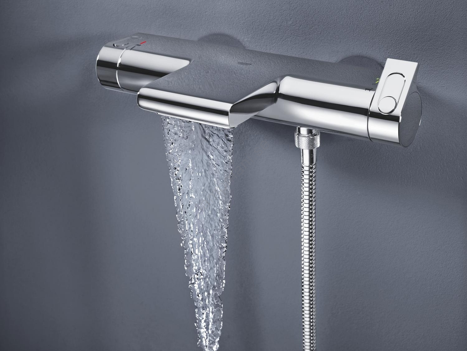 • Väggmonterad termostatblandare för badkar för enkel installation.