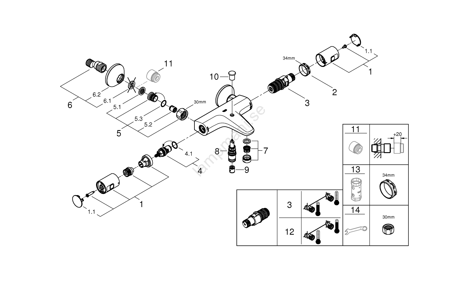 GROHE 345982430 - Termostatblandare för badkar PRECISION START 168 mm, svart | Lampmani