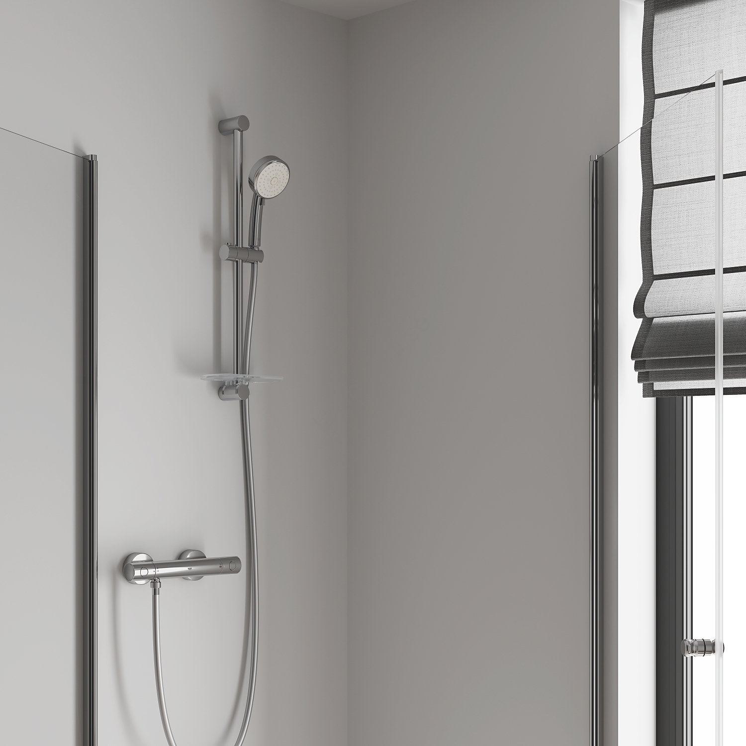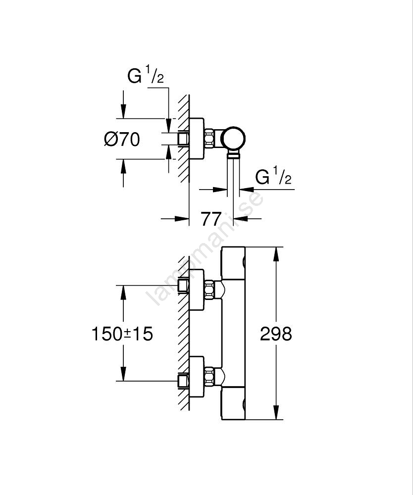 • Väggmonterad termostatblandare för dusch för enkel installation.