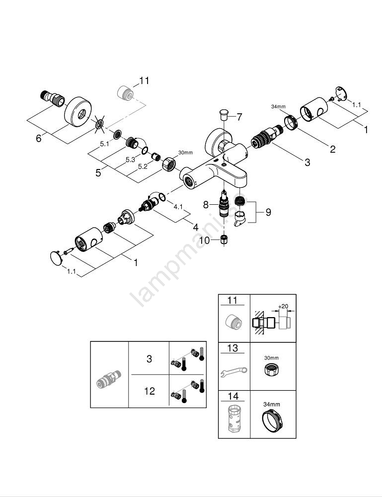 GROHE 34766000 - Termostatisk badkarsblandare GROHTHERM 800 COSMOPOLITAN DN 15 krom | Lampmani