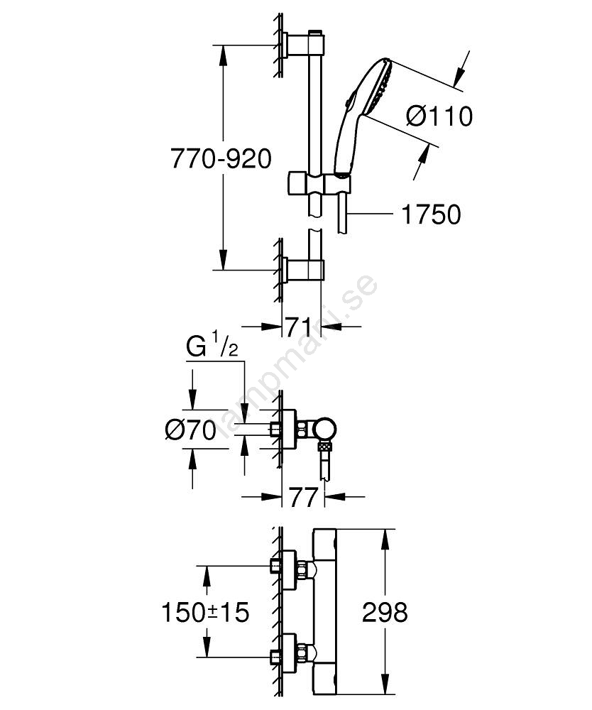 • Duschstång 900 mm med glidande och vridbar hållare möjliggör enkel justering av duschens höjd och vinkel.