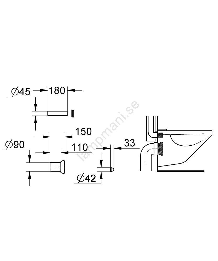 GROHE 37311K00 - Anslutnings- och avloppssats för WC 150 mm svart | Lampmani