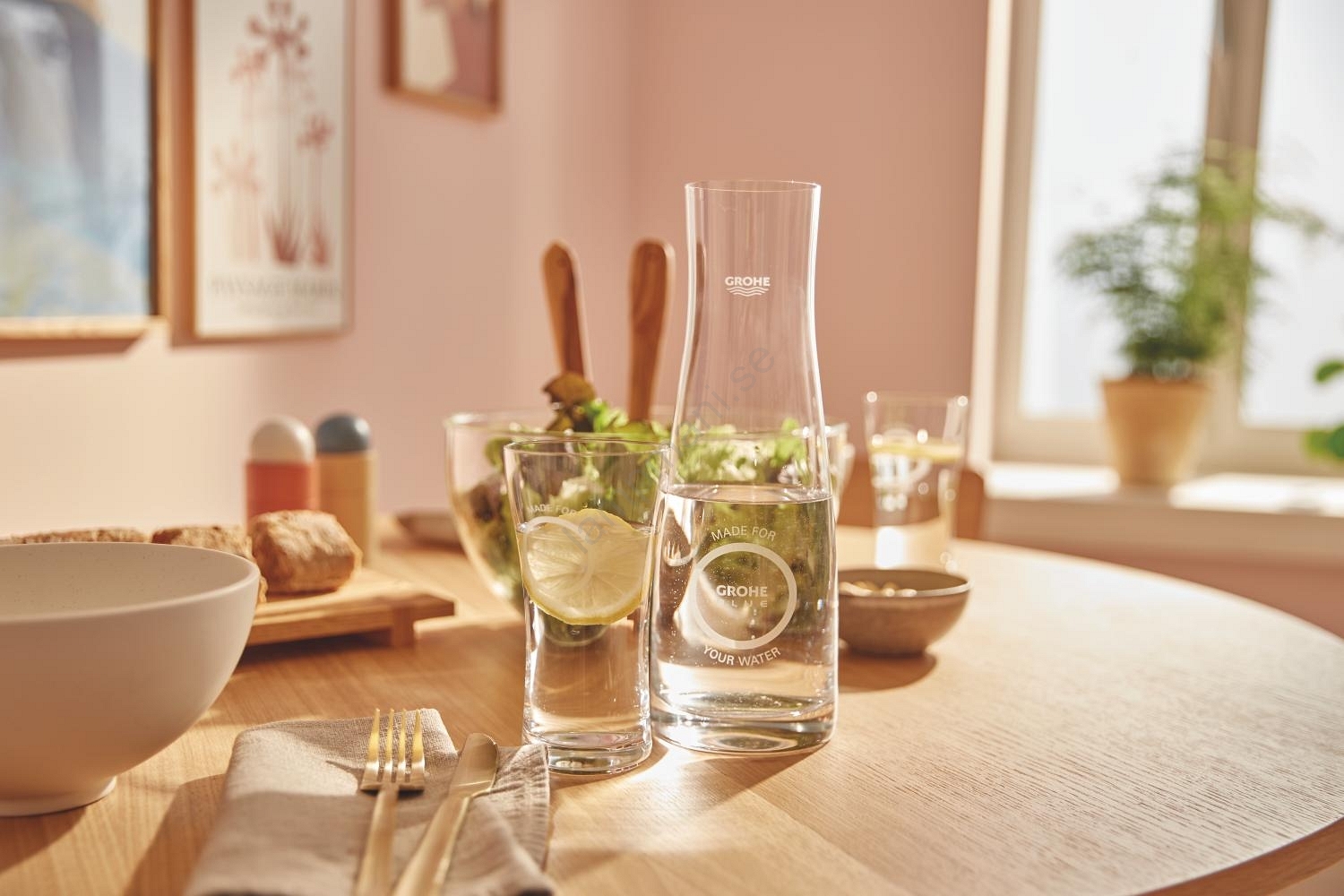 • Kan kombineras med GROHE Blue 1 l glaskaraff (40405001) för att servera större mängder vatten.