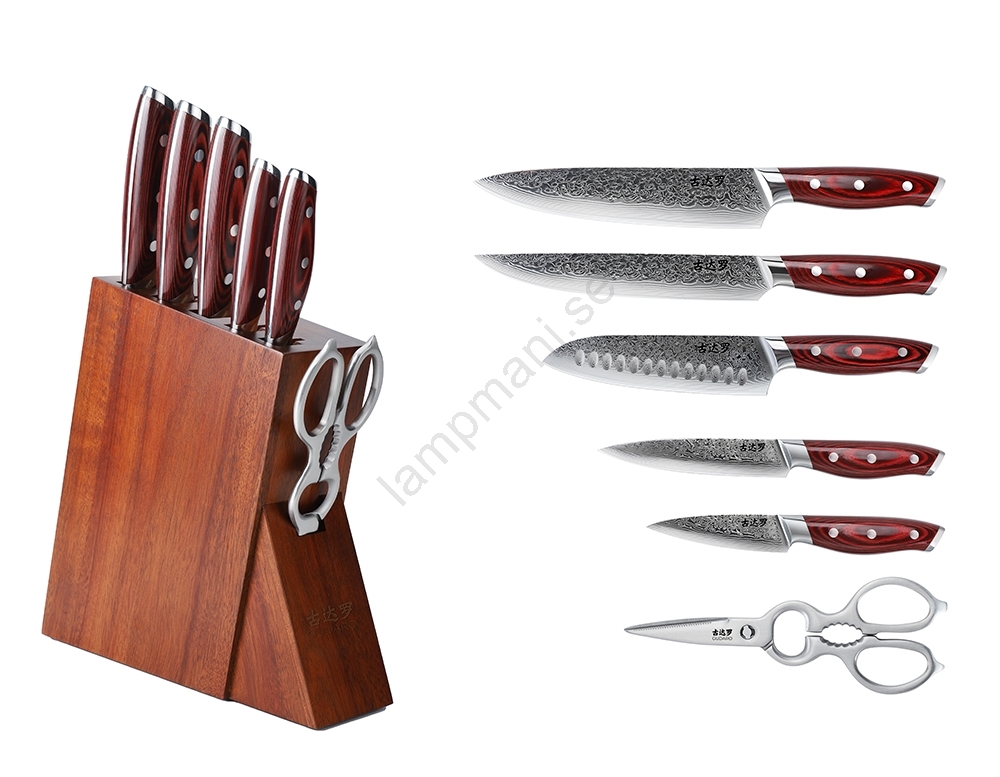 Block, stativ och vässare, Damaskus, Gudaro, Hem och trädgård, Hushåll, Hushållsutrustning, Knivar, Köksredskap, Set, Varumärken