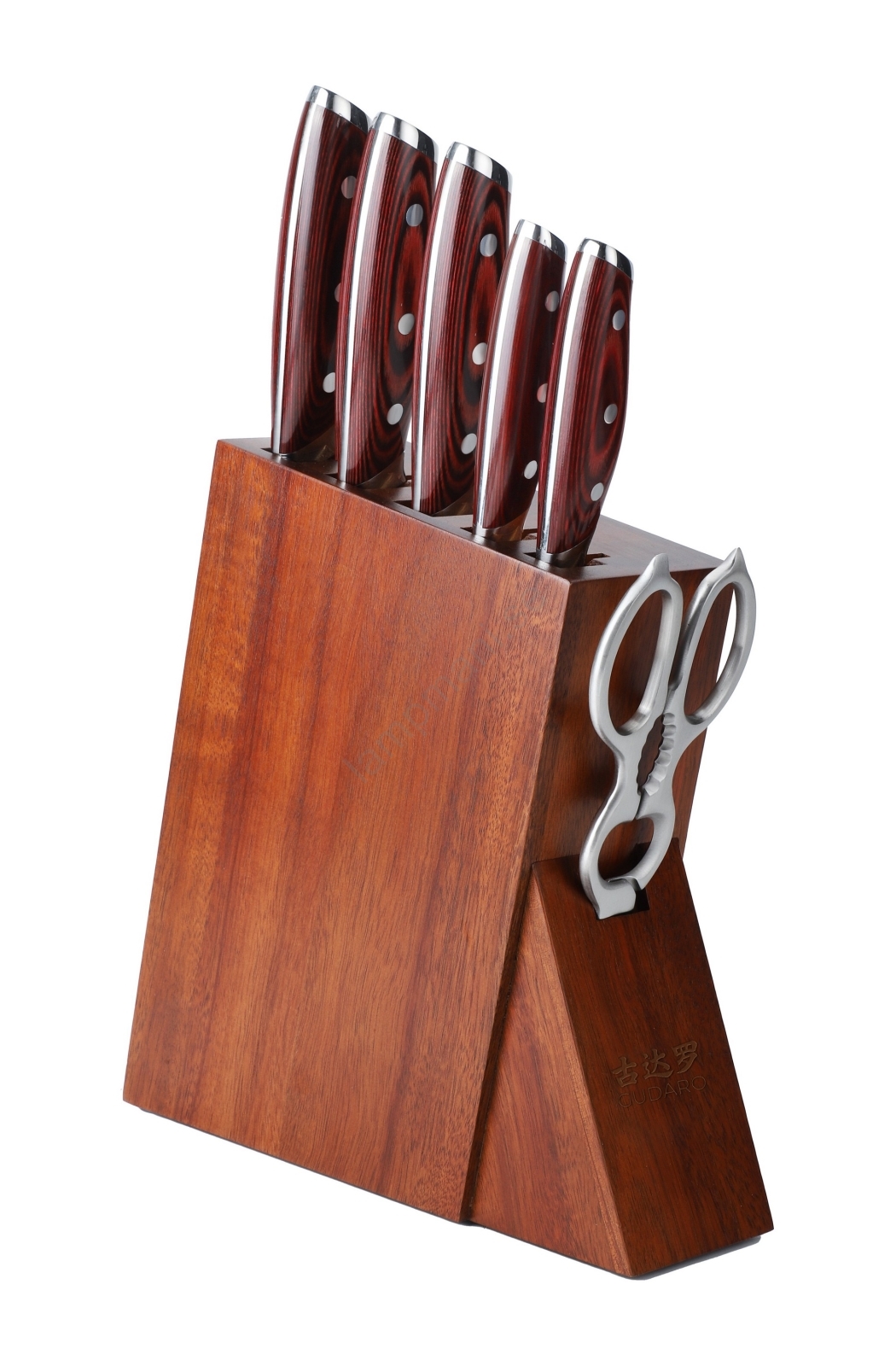 Gudaro - KENSHO 7-delars köksknivset i knivblock, akaciaträ | Lampmani