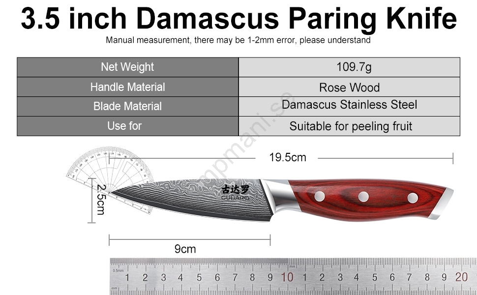 • Kökskniv 3,5" (tjocklek 2 mm).