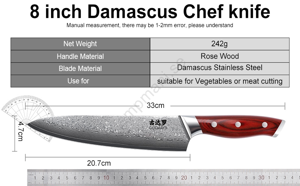 • Kockkniv 8" (tjocklek 2,5 mm).