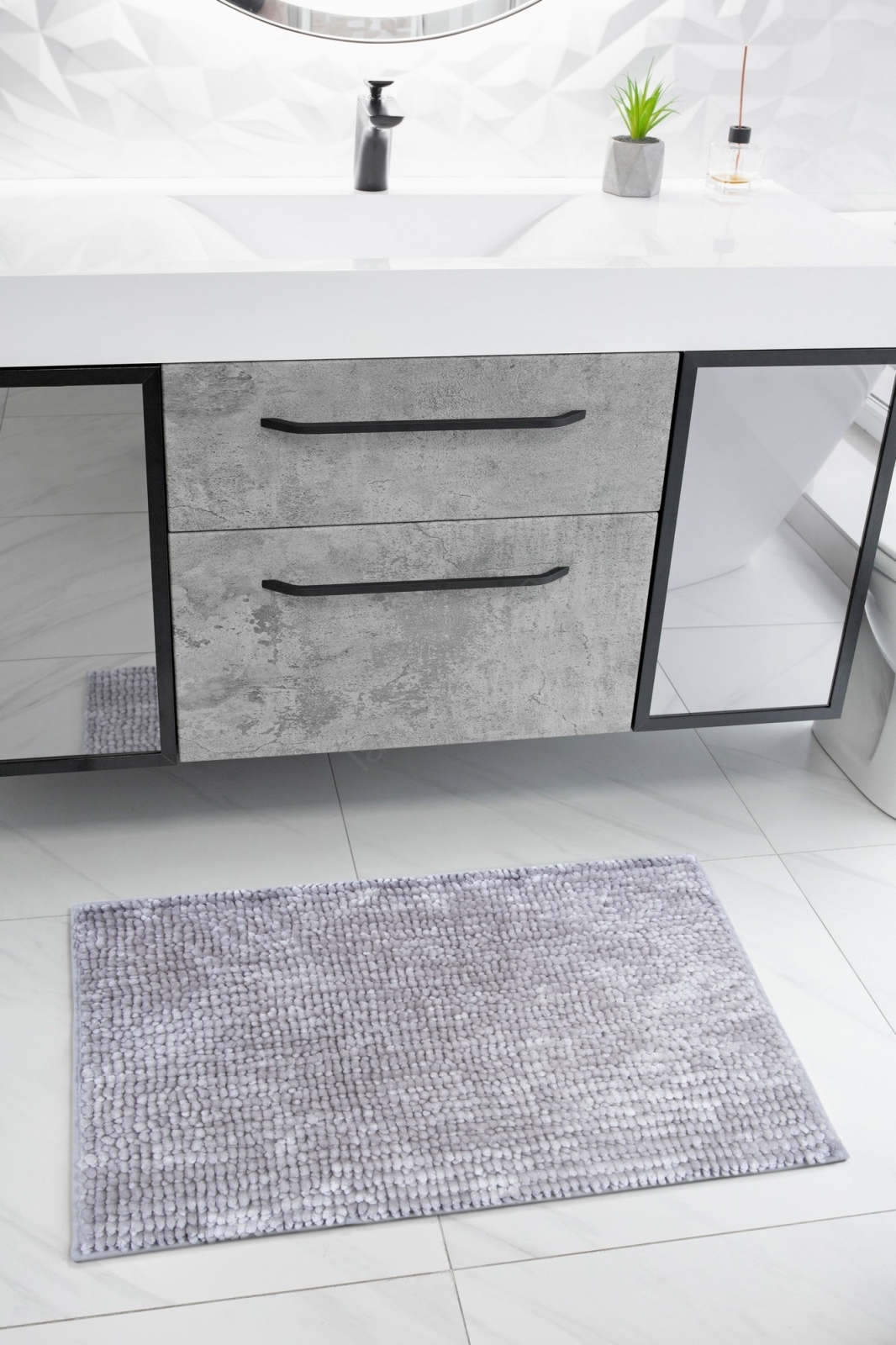Halkfri badrumsmatta CHENILLE 50x80 cm grå