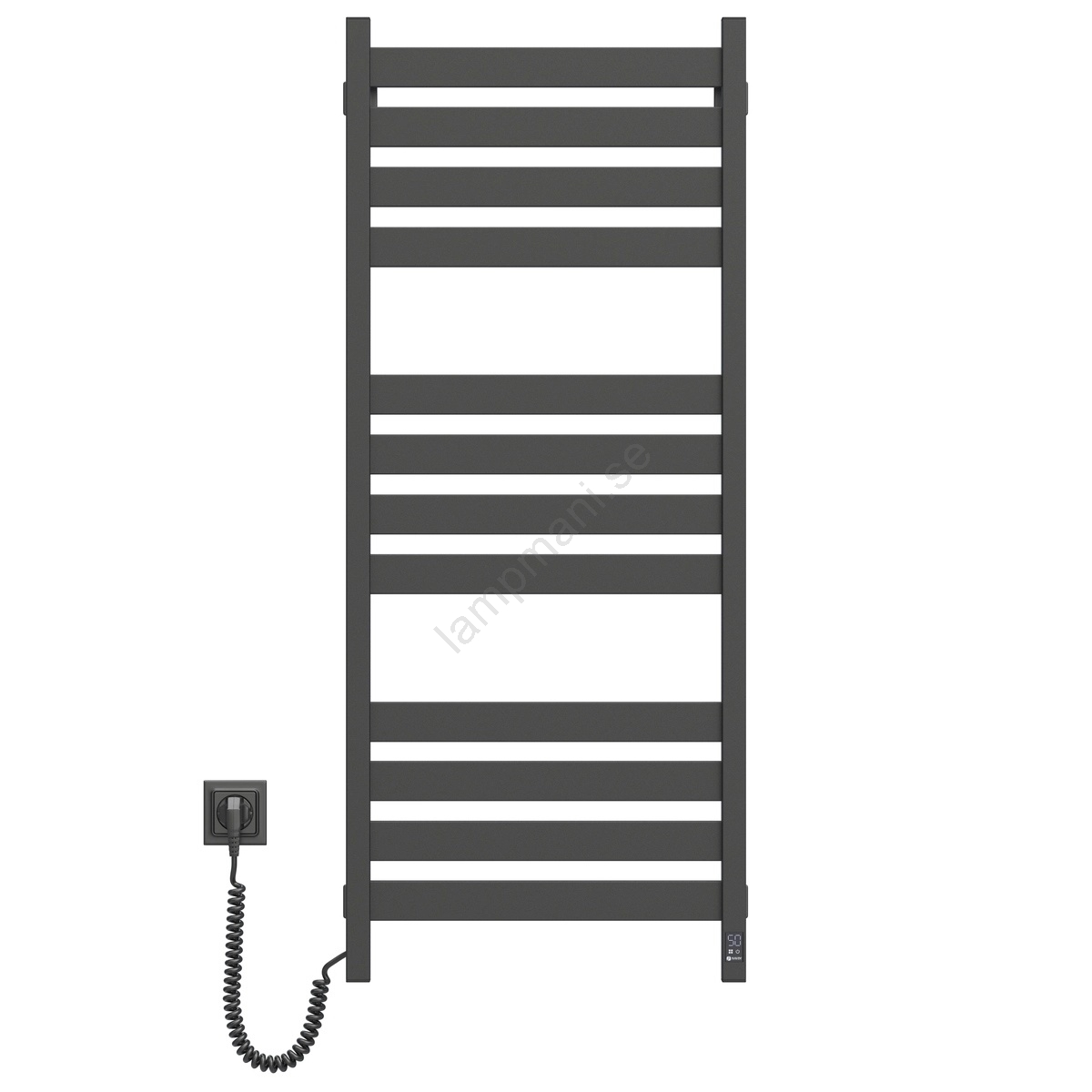 Handdukstork för badrum med termostat LARGO 541 W/230 V, 120,6 cm, IP44, svart, vänsteransluten, kantig